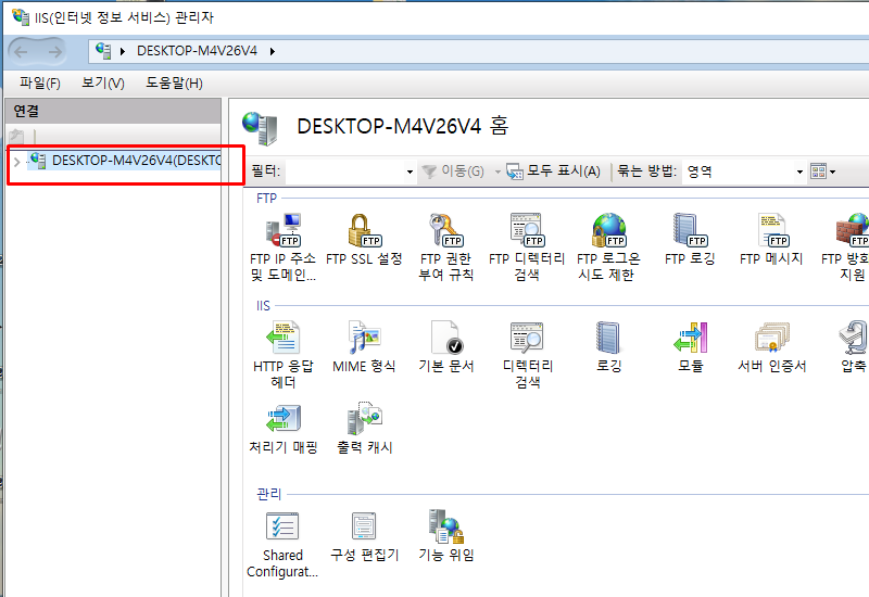 7. [IIS(인터넷 정보 서비스) 관리자] 클릭