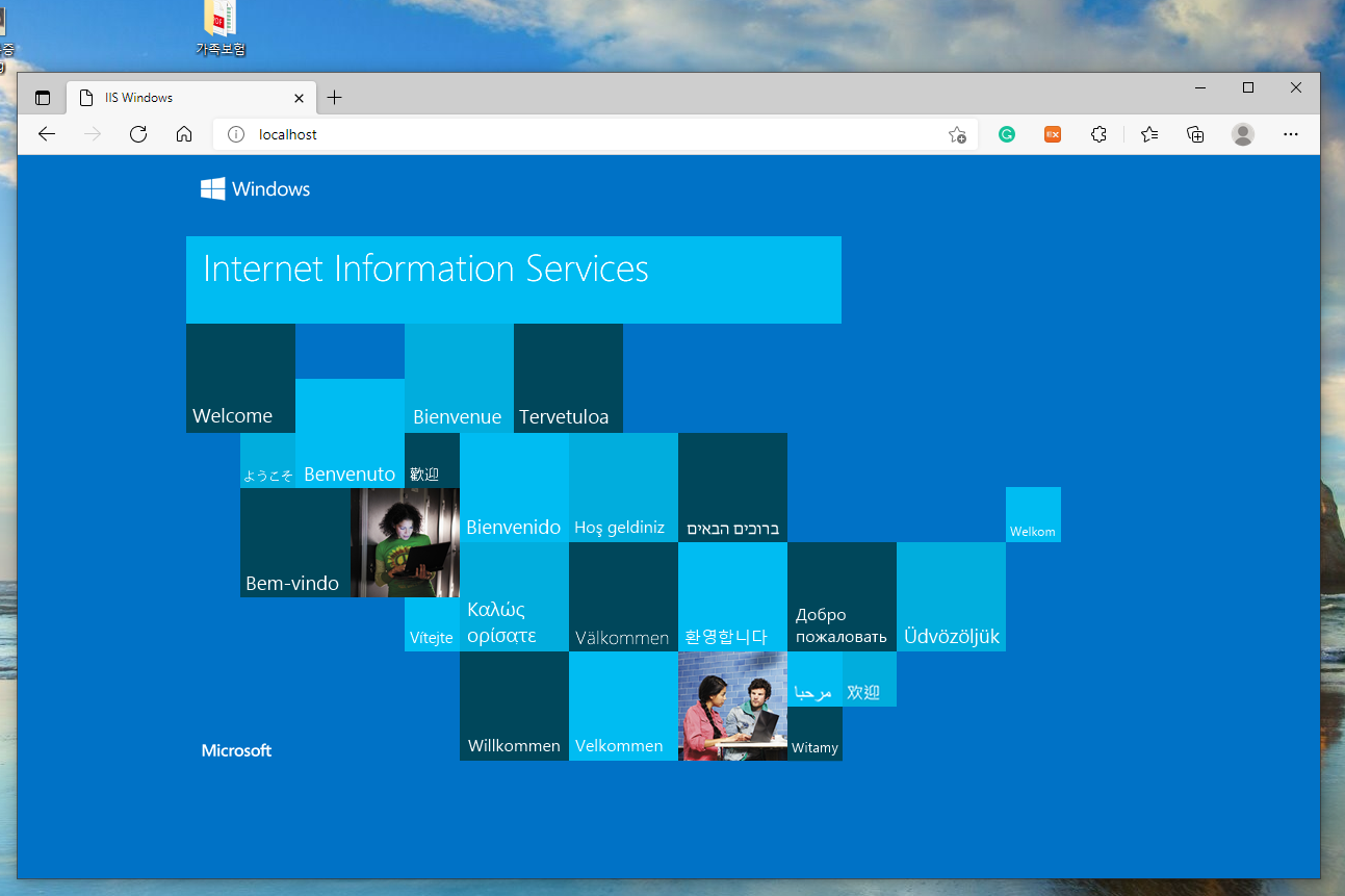 로컬 서버 설치 후 확인은 브라우저(엣지, 크롬, 익스플로어)에서 주소창에 localhost라고 치면 서버에 연결된 html 페이지가 보이게 된다.
