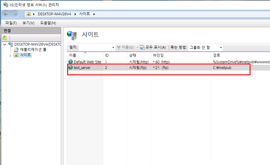 8. [IIS(인터넷 정보 서비스) 관리자]에 FTP 서버 활성화